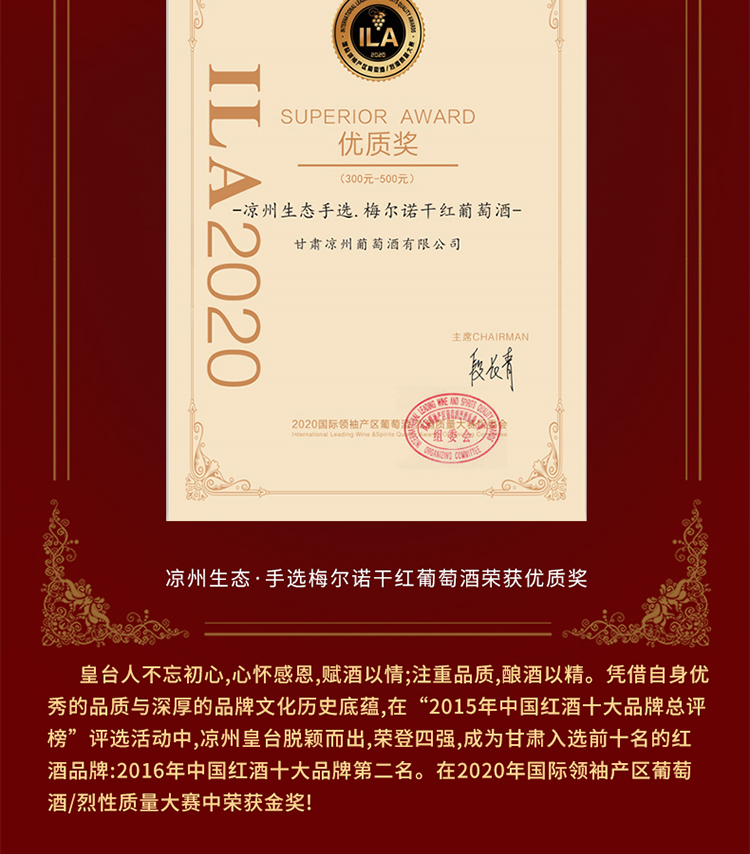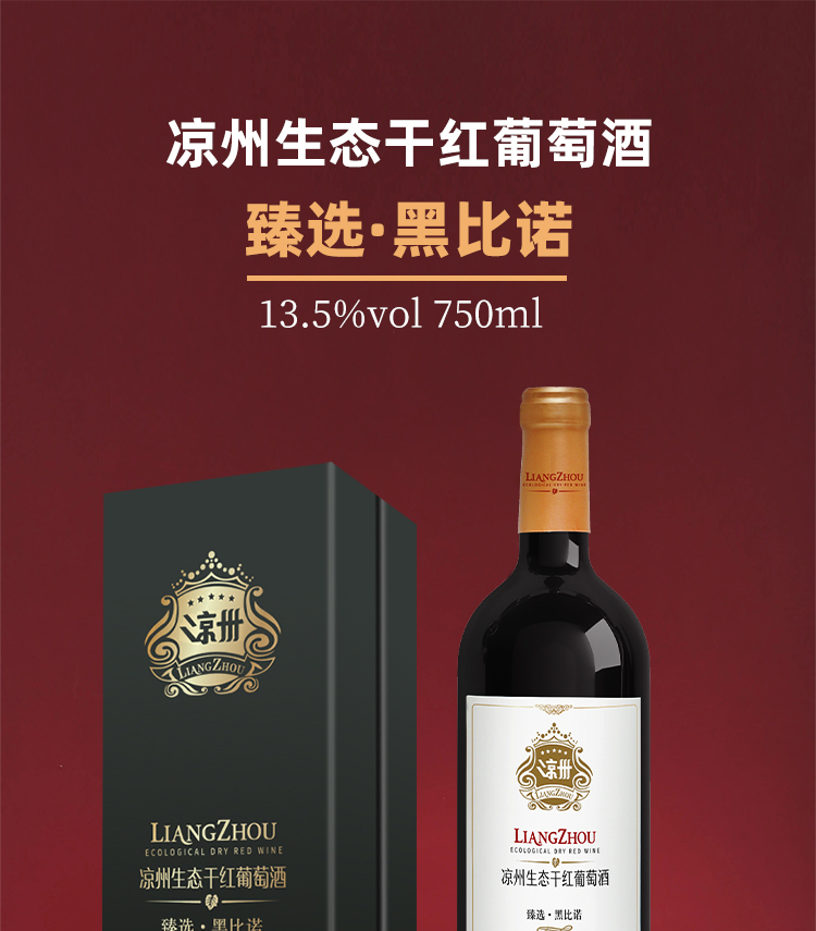酒品名稱:涼州生態(tài)臻選·黑比諾干紅葡萄酒