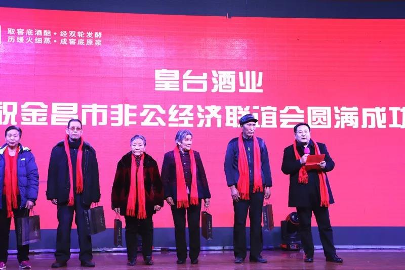盛會現(xiàn)場暖意融融:“皇臺酒業(yè)祝金昌市非公經(jīng)濟(jì)聯(lián)誼會圓滿成功”“大漢底蘊(yùn),窖底原漿,皇臺酒好喝不上頭”“新起點(diǎn),新征程,皇臺酒業(yè)祝大家新春快樂”的巨型條幅,為會場營造了喜慶氣氛。