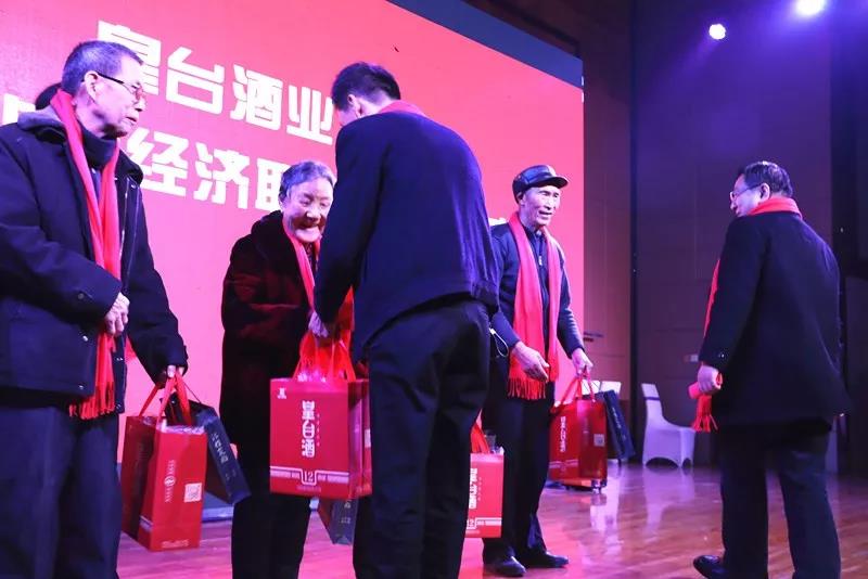 2019年,是中華人民中國和成立70周年。為慶祝祖國華誕,晚會還特邀了與中華人民共和國70周年華誕同齡人,皇臺酒業(yè)為老人們奉送了禮品,以示最崇高的致敬和深深的祝福。