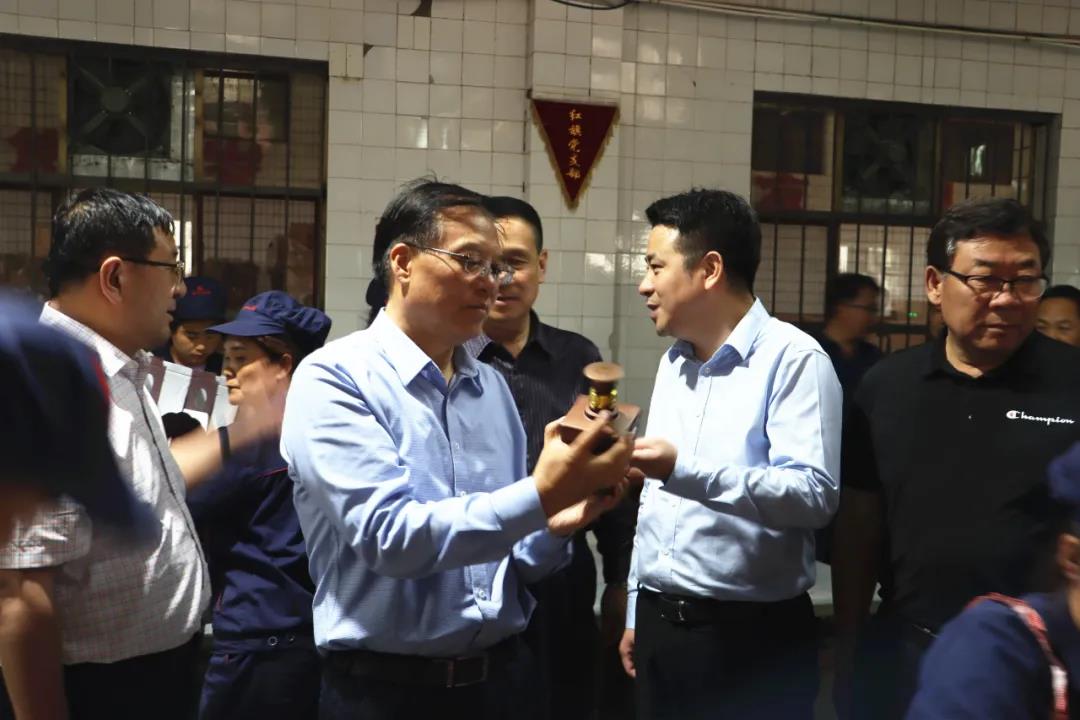 在調(diào)研組一行參觀的過程中,公司董事長趙海峰向調(diào)研組匯報了目前公司的全面經(jīng)營情況。趙董事長說:去年至今年,是皇臺酒業(yè)攻堅克難的一年,公司上下同心協(xié)力,眾志成城,在踏實實干中創(chuàng)新求變,在精益求精中力挽狂瀾,實現(xiàn)了公司扭虧為贏的向好局面,使皇臺重新步入穩(wěn)步發(fā)展的健康軌道。在產(chǎn)品酒質(zhì)方面,公司不但聘請了國家白酒評委、教授級高級工程師陳兵為公司的生產(chǎn)總工程師,而且還定期請中國釀酒大師、原水井坊總工程師賴登燡,釀酒大師、原五糧液股份有限公司副總經(jīng)理劉友金等專家,定期來公司進行釀酒工藝指導(dǎo)。2019年,皇臺生產(chǎn)的窖底原漿12、18,在全球59個國家和地區(qū)1750款產(chǎn)品中脫穎而出,分別榮獲2019比利時布魯塞爾國際烈性酒大賽金獎、銀獎。窖底原漿系列以及鼎系列產(chǎn)品,受到廣大消費者的一致好評。