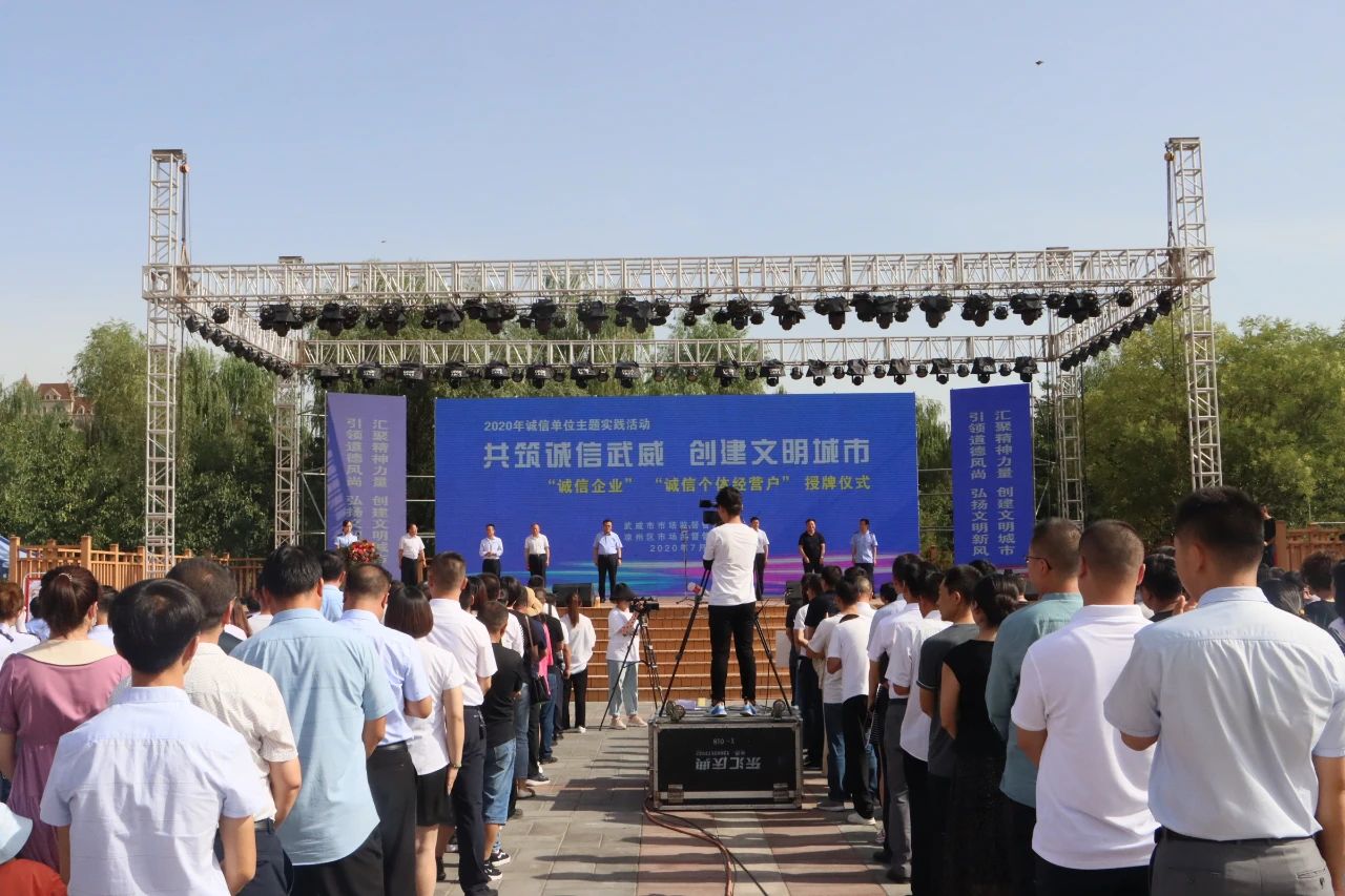 為認真貫徹落實黨的十九大精神,以習近平新時代中國特色社會主義思想為指導,以加強社會信用體系建設為基礎,大力推進誠信建設制度化,倡導和弘揚重信譽、守信用、講信義的良好風尚,實現(xiàn)企業(yè)和個體經(jīng)營戶自我教育、自我約束、自我管理、自我提高、引領誠信文明的社會風尚,助力全國文明城市創(chuàng)建工作,2020年7月31日上午,“共鑄誠信武威,創(chuàng)建文明城市”誠信單位主題實踐活動在涼州區(qū)植物園中心廣場舉行,甘肅皇臺酒業(yè)股份有限公司等多家企業(yè)被授予誠信企業(yè)榮譽稱號。