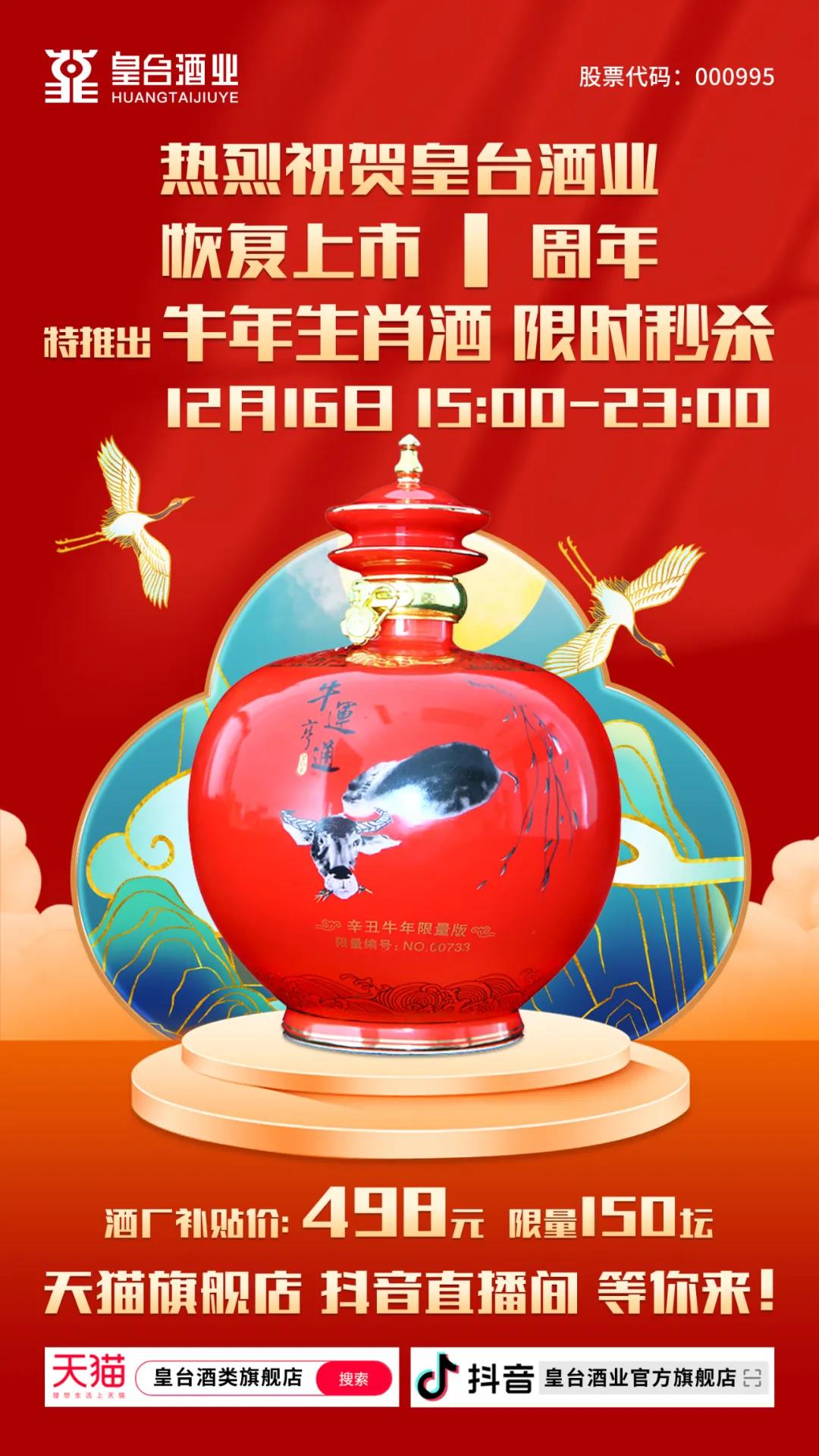 是皇臺酒業(yè)恢復(fù)上市1周年的日子!