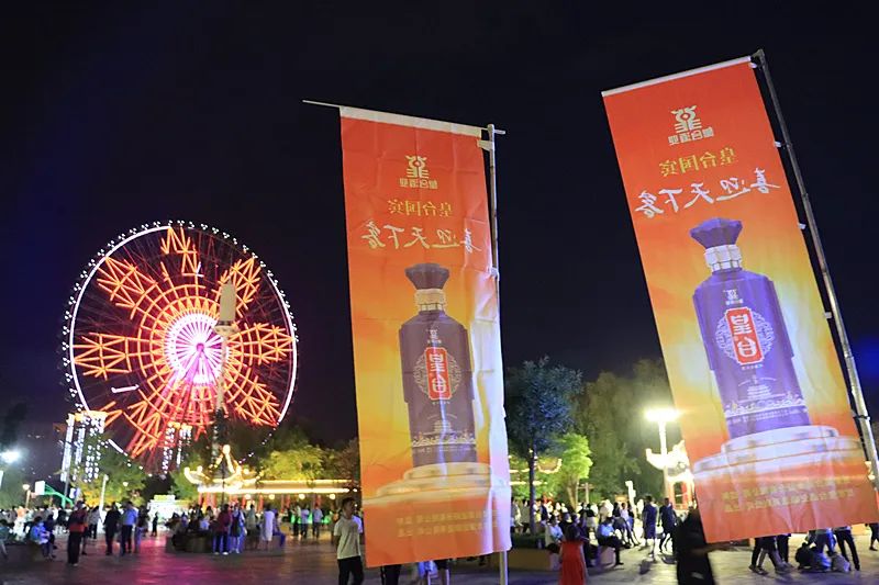 拱門高聳,彩旗飄飄,皇臺酒業(yè)巨型條幅高懸,與夜空中擎天而立的摩天輪遙相呼應(yīng),繽紛斑斕。舞臺?麗,人群熙攘,大家在綠樹環(huán)繞和皇臺酒的濃香中,共享夏日的熱烈。