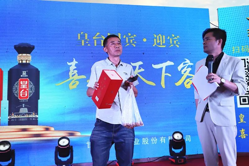 皇臺酒業(yè)國有董事劉興明為一等獎(jiǎng)幸運(yùn)觀眾頒發(fā)窖底原漿12 2盒