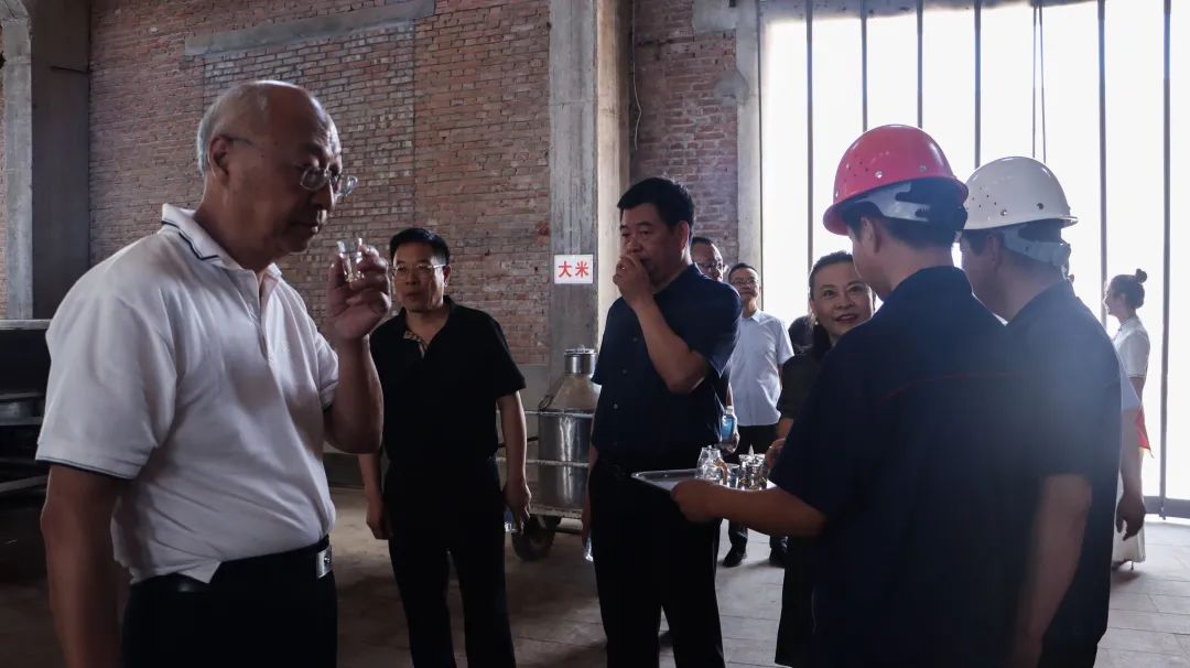 在參觀釀造車間生產(chǎn)情況的過程中,呂云懷對每個(gè)釀酒工藝都駐足查看,問詢關(guān)于上甑、攤晾、發(fā)酵等各個(gè)細(xì)節(jié)方面的操作,并逐一品嘗了車間剛生產(chǎn)出的原度酒。他對皇臺酒業(yè)釀造車間的操作工藝給予了充分肯定,并從品質(zhì)提升方面提出了自己的寶貴看法和指導(dǎo)意見。
