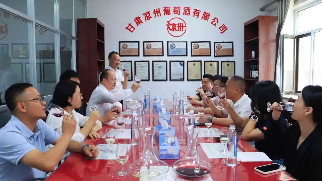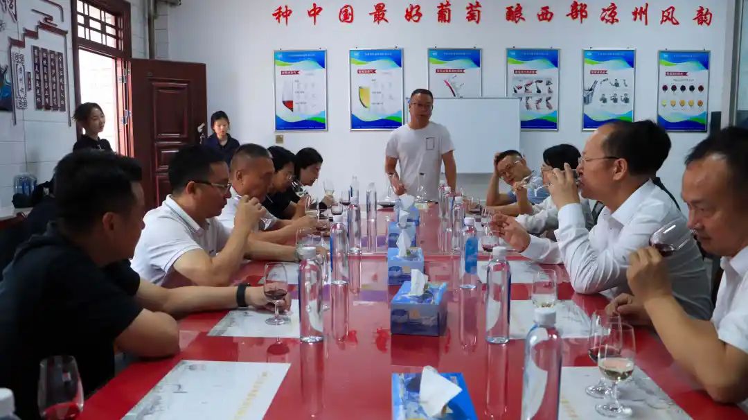 在葡萄酒品鑒室,大家品鑒了涼州生態(tài)手選·貴人香干白葡萄酒和涼州生態(tài)手選·梅特林干紅葡萄酒。這兩款葡萄酒特色鮮明,透著濃郁的西北風情。