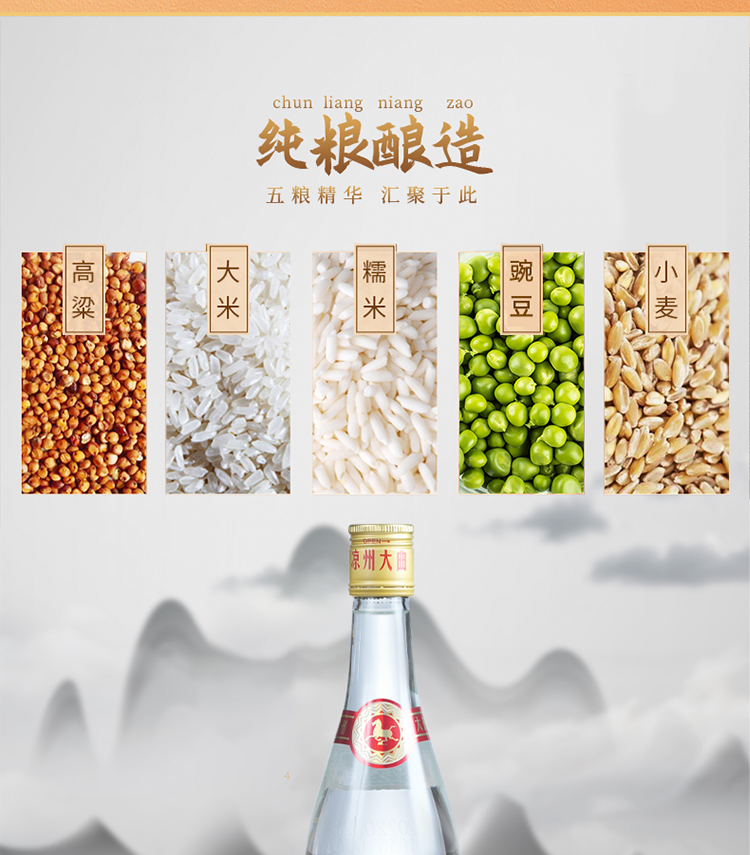 原料:水、高粱、大米、小麥、糯米、豌豆