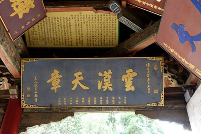 四十四塊牌匾中,除以上所述之外:“化峻天樞”,題于康熙五十八年;“德盛化神”匾,題于雍正九年;“司文章命”匾,特簡文林郎知武威縣事王守曾題于乾隆四年;“掌仙桂籍”匾,鄭松齡題于乾隆四年;“陽春一曲”,于雍正元年題寫;“文明長晝”,曾國瑛于乾隆十一年題寫;“聚精揚(yáng)紀(jì)”,于嘉慶十一年,甘肅按察使司按察使、前分守甘涼兵備道劉大懿題寫;“云漢天章”,張美如題寫于道光年間;“天下文明”,牛鑒題寫于道光十九年;“文以載道”,王步瀛題寫于宣統(tǒng)建元己酉秋;“文明以正”,民國六年題寫……“斯文主宰”,為文昌宮山門橫批;“月滕殿輝”,為桂籍殿門前牌樓橫批。其中“書城不夜”和“聚精揚(yáng)紀(jì)”兩塊牌匾,被收錄進(jìn)中華名匾。