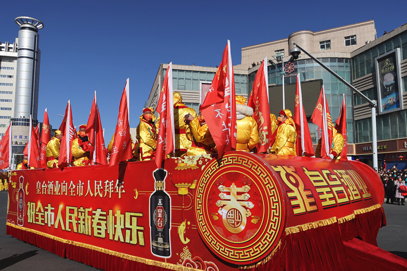 皇臺巨龍,威風(fēng)八面,神采飛揚(yáng),在廣大圍觀群眾的注目下,一路噴灑著醇香的皇臺酒,酒香醉美了涼州城。